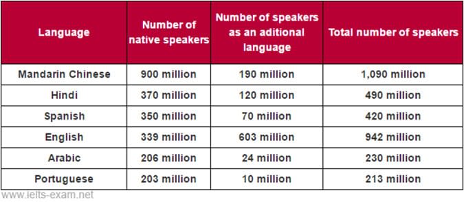 Languages with the most native speakers - IELTS Writing Task 1