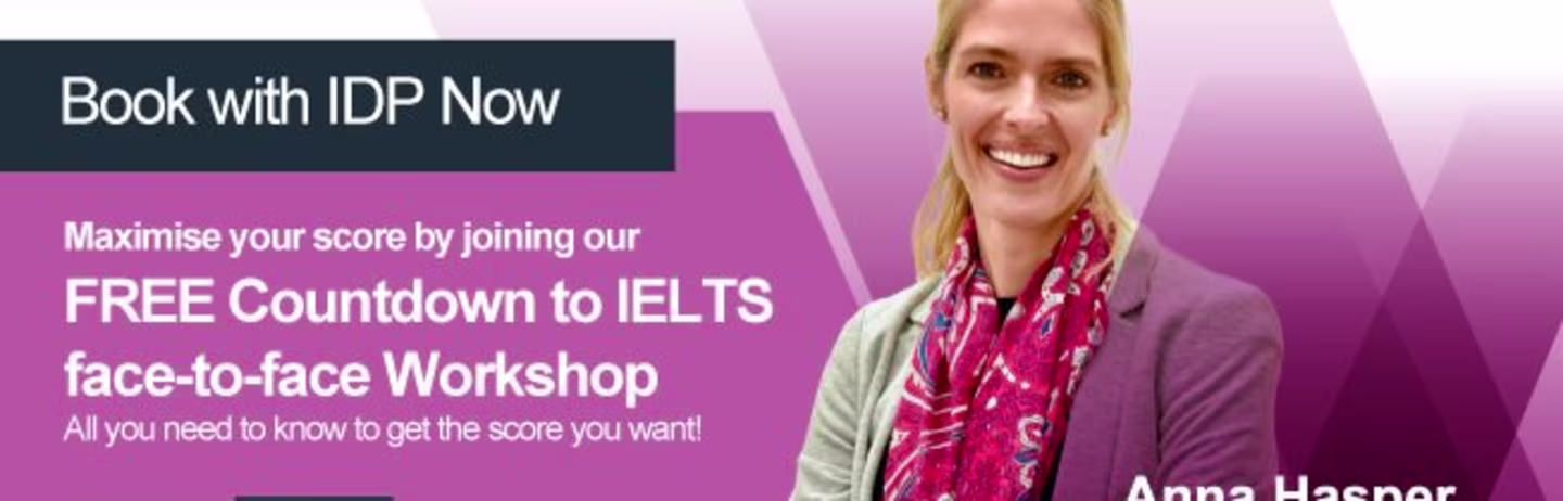 The IDP Countdown to IELTS Webinar is a 3-hour face-to-face workshop that will offer you all you need to know to get the score you want!