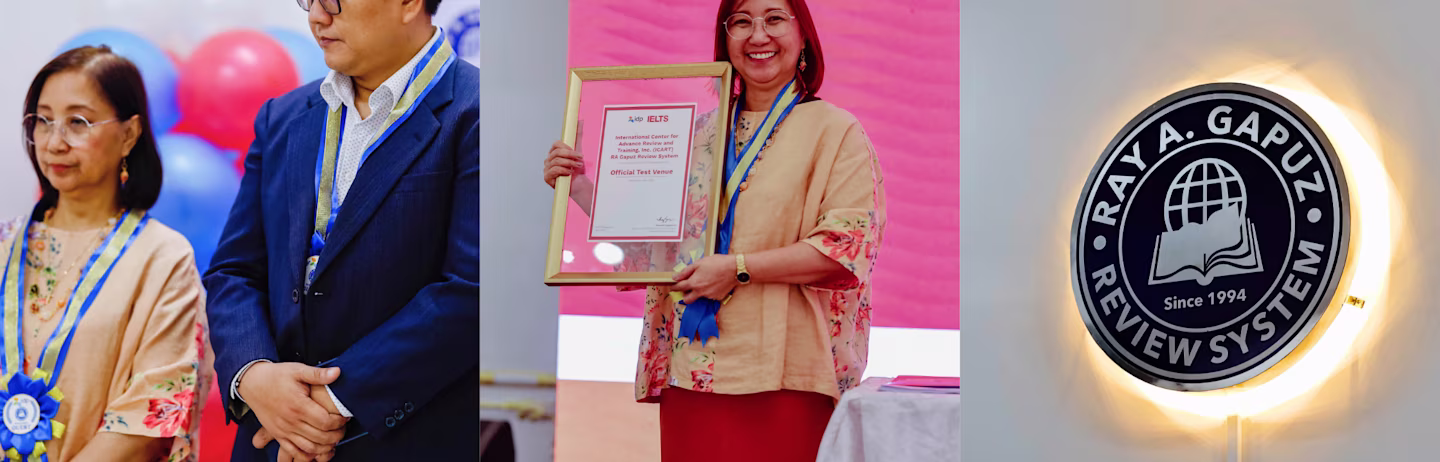 Whether you're aiming for a high band score or preparing for your next career step, Ray A. Gapuz Review System offers the support you need to succeed in the IELTS test. Enroll today and gain access to a structured curriculum, focused lessons, online practice tests, and personalized guidance from experienced IELTS educators.