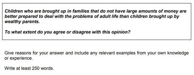 第2部分的寫作範例是討論從經濟狀況不佳家庭長大的孩子,是否比家境富裕的孩子更能處理大人遇到的問題,接下來我們可以參考官方提供的回答範本。