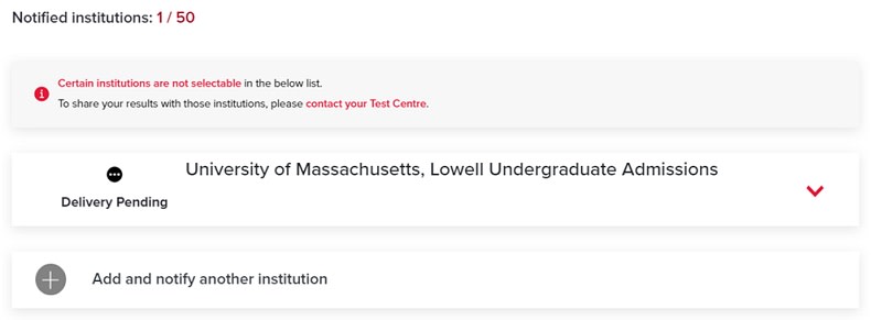 Để gửi trường tiếp theo, thí sinh bấm chọn “Add and notify another Institution” để thực hiện.