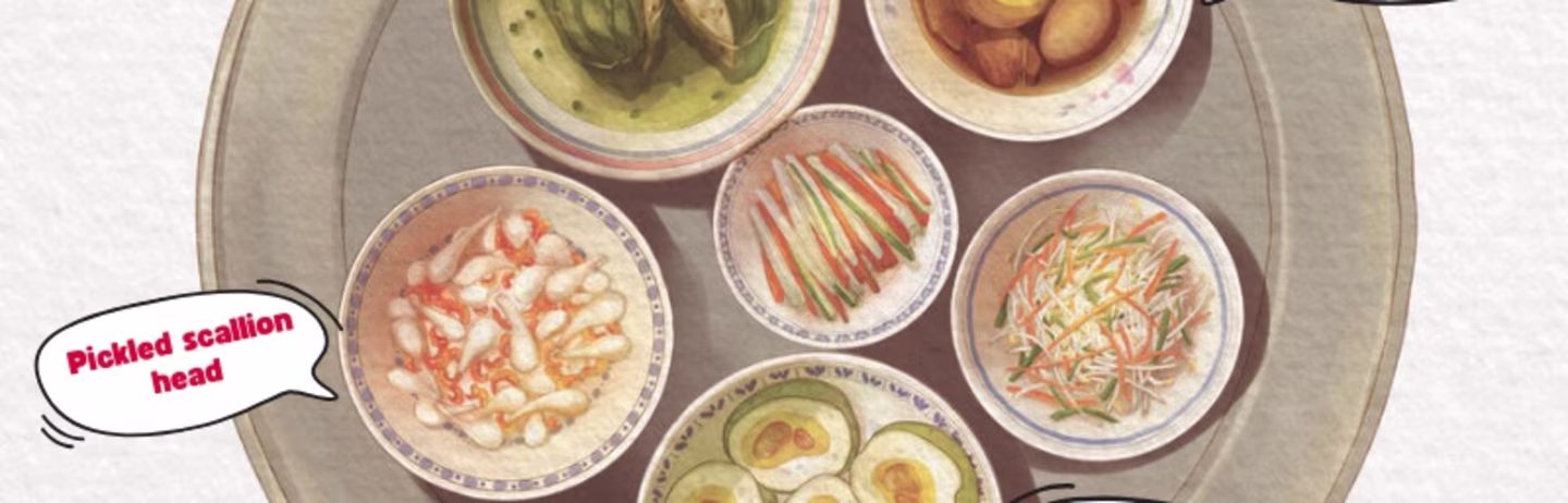 Pickled scallion head | Củ kiệu muối | Pickled scallion heads are often enjoyed with boiled pork. |