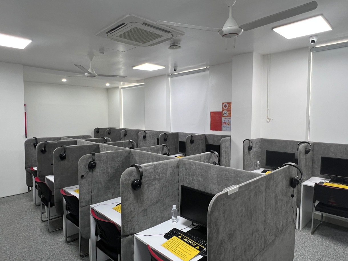 Cơ sở vật chất hiện đại: Phòng thi được trang bị thiết bị đạt chuẩn quốc tế, đảm bảo trải nghiệm thi thoải mái và công bằng. Các phòng thi máy tính được đầu tư kỹ lưỡng, hỗ trợ thí sinh lựa chọn hình thức thi IELTS trên máy tính với kết quả nhanh chóng chỉ trong 2 ngày.