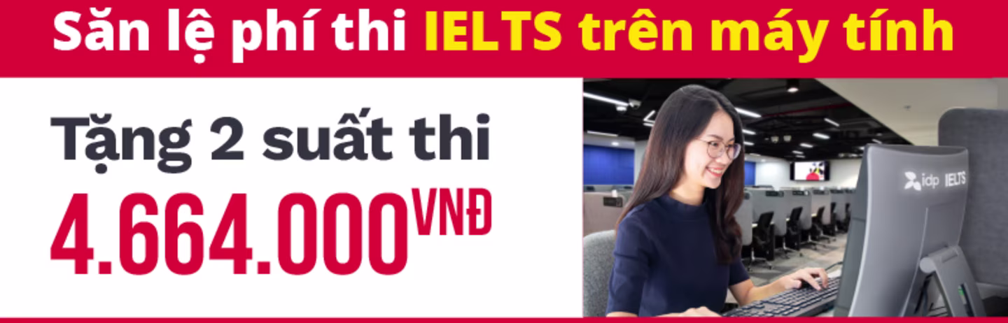 IELTS IDP tặng 2 suất thi trị giá 4,664,000 VNĐ/suất cho 04 bài thi xuất sắc nhất. Săn giải thưởng bằng cách tham gia chia sẻ trải nghiệm thi IELTS trên máy tính & phương pháp ôn luyện hiệu quả.