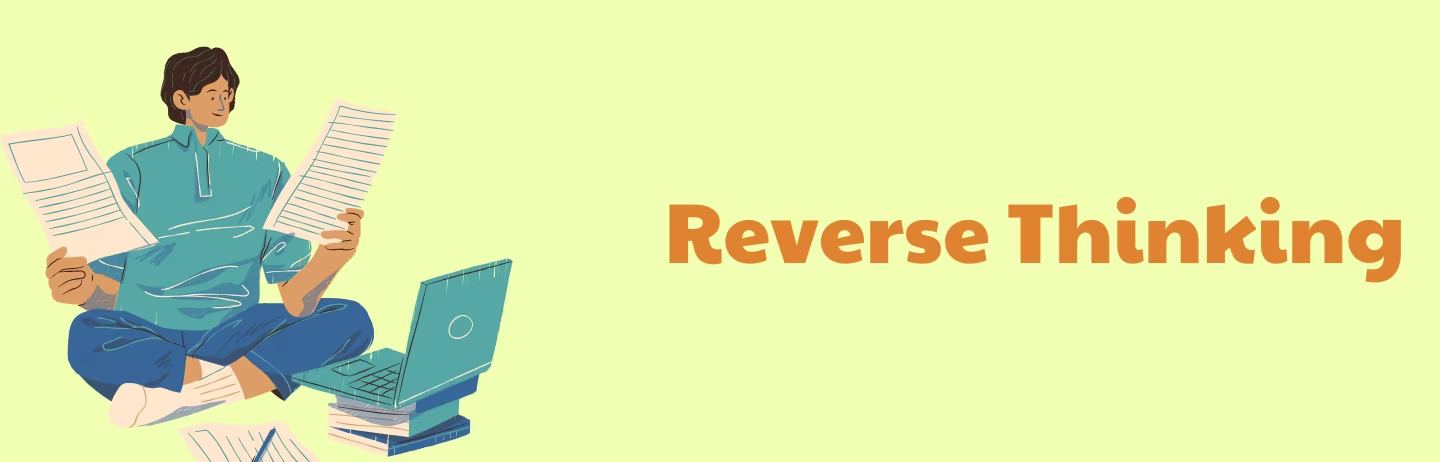 Reverse thinking is a method that approaches problems from the opposite direction compared to conventional or linear thinking. Instead of analyzing a situation directly, you begin by considering the reverse or opposite scenario and then trace backward to identify causes and propose solutions.