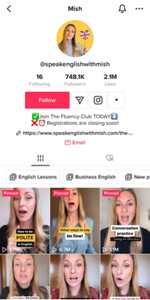 Với 11 năm kinh nghiệm giảng dạy tiếng Anh, Mish trên kênh Speak English with Mish bắt đầu xây dựng kênh TikTok với hy vọng các video sẽ chạm được đến nhiều người xem hơn và giúp xây dựng sự tự tin trong khả năng tiếng Anh của họ.