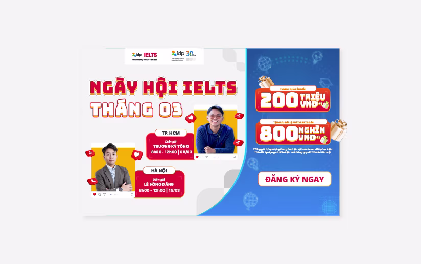 Register for IELTS at IDP to enjoy a variety of attractive offers, from valuable gift vouchers to high-quality IELTS preparation materials.