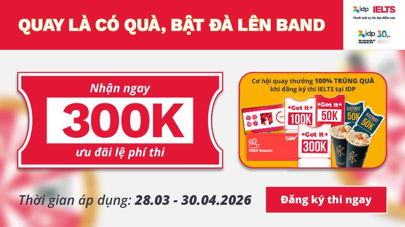IELTS IDP dành cho các thí sinh đăng ký thi từ nay đến 30/04/2026: