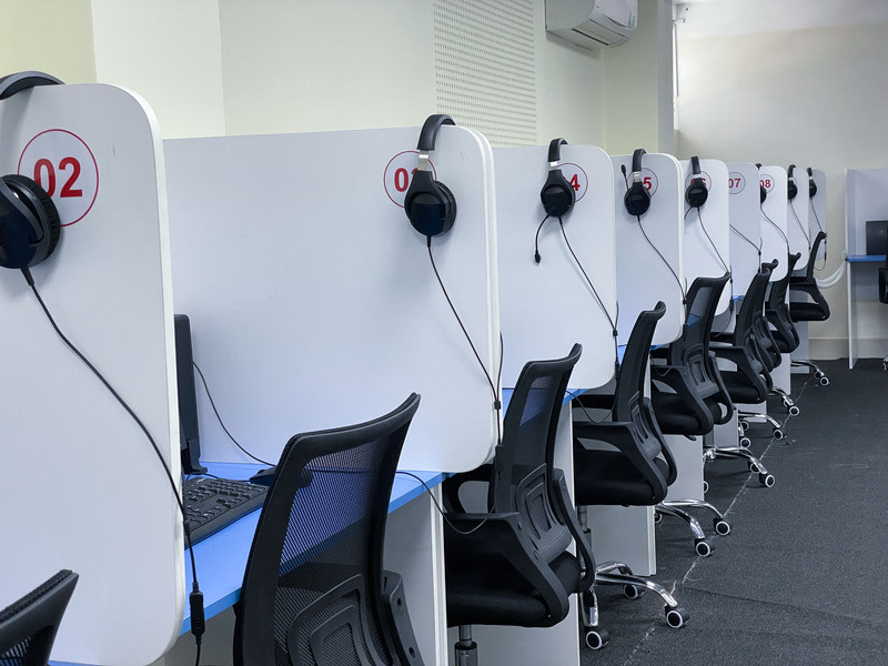Dàn 20 máy tính màn hình 21-inch độ phân giải full HD (1920x1080) cho chất lượng hiển thị tối ưu nhất cho thí sinh tham dự bài thi IELTS.